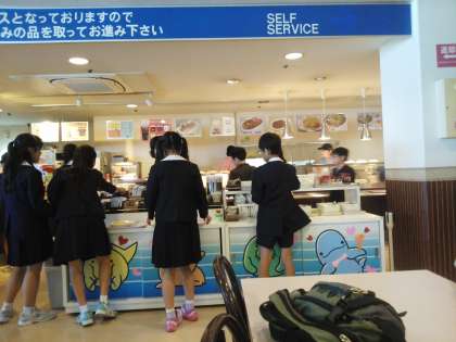 鳥羽水族館での昼食。メニューの中から、食べたいものを選んで、いただきました。12時40分の集合時間まで、班ごとに協力して、考えながら「現地での最後の活動」を続けます。