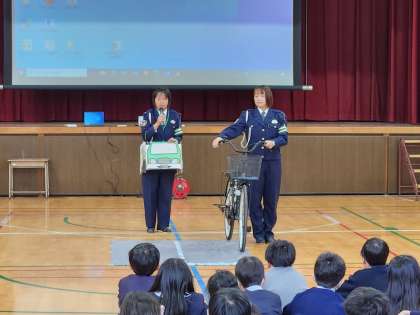 高学年は低学年の内容に加えて、自転車の乗り方や交差点の巻き込み事故など、具体例をあげていただきながら、わかりやすく教えていただきました。