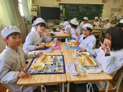 今日の給食時の様子は、6年生の写真を使っています。