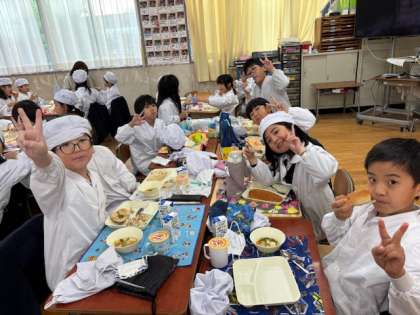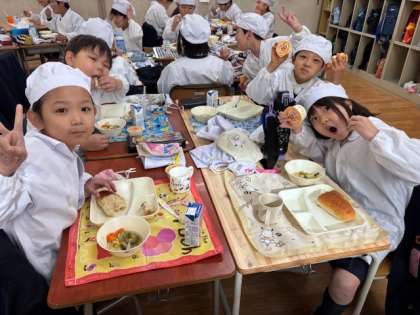 今日の給食の様子は、2年生の写真を使っています。
