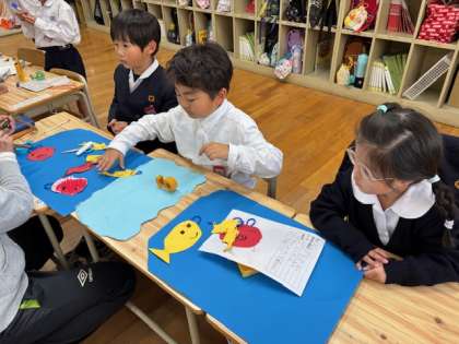 どの班も、だんだんと出来上がってきました。金曜日は、作ったおもちゃで遊ぶようです。