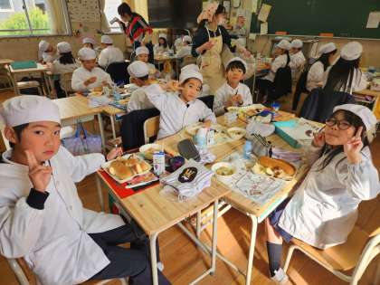 「とうふローフ」は、ツナ、とうふ、細かくした大豆、たまねぎ、でんぷんを混ぜ合わせ、砂糖、塩、濃口しょうゆで味付けしたものを焼き上げています。