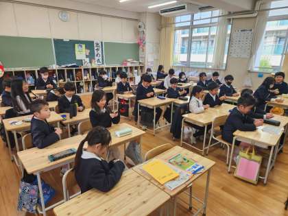 冬休みの思い出を振り返ったり、新年の目標を決めたりしていました。