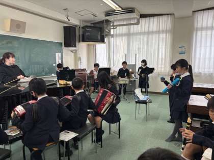 2月の参観に向けて、5年生が合奏の練習に取り組んでいます。