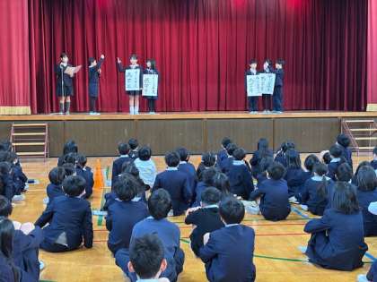 今日の集会は、新聞紙じゃんけんゲームでした。