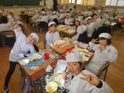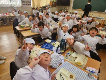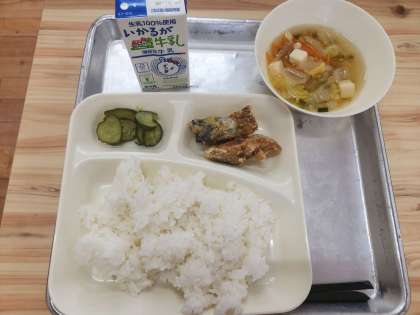 今日は「さば」を子どもたちの大好きなカレー味にした竜田揚げで提供されています。