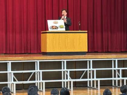 今週は、豊崎小学校の給食週間です。木曜日には、異学年同士で給食をいただく交流給食があります。校長先生からは、学校給食の起源についてのお話がありました。毎日温かい給食が食べられることに改めて感謝する週にしましょう。
