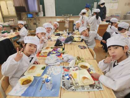「カレー煮」は、カレーライスのルーのようなとろみのある仕上がりで、パンのおかずにぴったりな一品で、子どもたちから大好評の献立です。