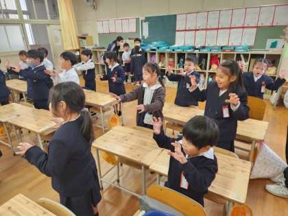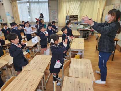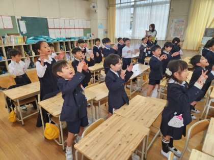 1年生は音楽の時間に「おにのパンツ」の歌を練習していました。