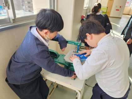 5年生は図画工作の時間に、木材を使った「パズルづくり」に取り組んでいます。