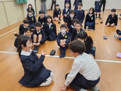 あいさつの仕方や学校生活など、日本とはずいぶん違うところがあり、子どもたちはみんな興味津々でお話を聞いていました。