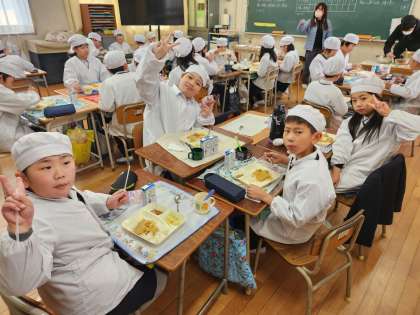 今日の給食時の様子は、4年生の写真を使っています。