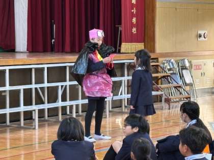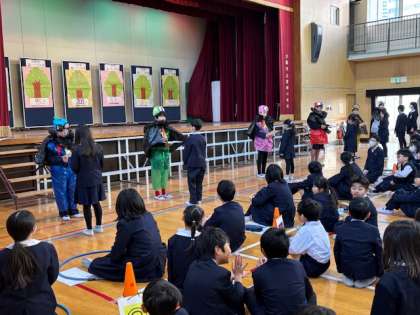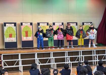 各学年の「あいさつの実」の数の結果発表と、あいさつをたくさんした児童の表彰がありました。