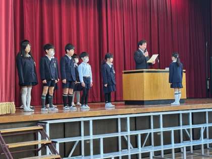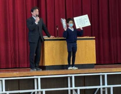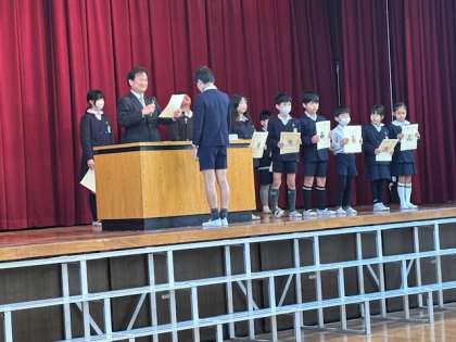 今日の朝会では、第70回青少年読書感想文コンクールで市長賞に輝いた児童の表彰がありました。表彰の後に、受賞した作文をみんなの前で発表しました。本を読んで考えたことを、自分の経験を織り交ぜながら、読み手を惹きつける表現で書いていました。