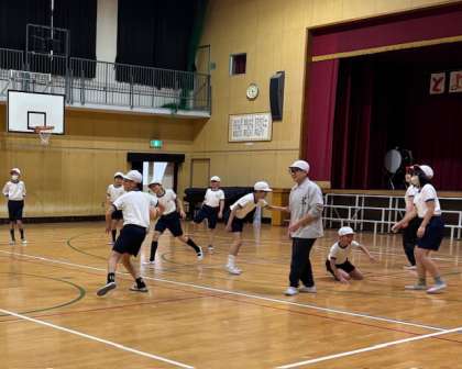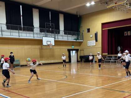 屋内運動クラブでは、6年生対4・5年生でドッジボールをしていました。