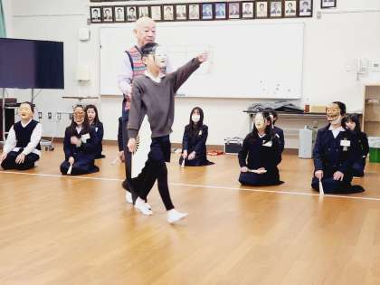 能を舞うグループでは、能面をつけての練習も特別にしていただきました!