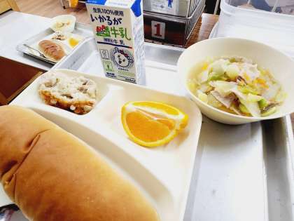 今日のグラタンに使われている「押麦」は、大麦の皮とぬかをとって蒸したものをローラーで平たくしたものです。おなかの調子を整える食物繊維が豊富に含まれています。