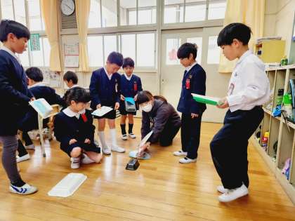 今日は空き容器に装飾をしたり、実際に風の力で動くかを試してみたりして、子どもたちは楽しく活動することができていました。