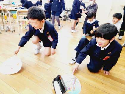 1年生は図画工作の時間に風の力で動く作品を作っていました。
