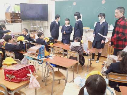 これまで集団登校の班長・副班長として頑張ってきてくれた6年生が、5年生、4年生にバトンを渡す日です。