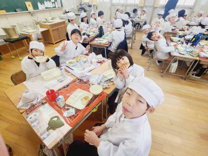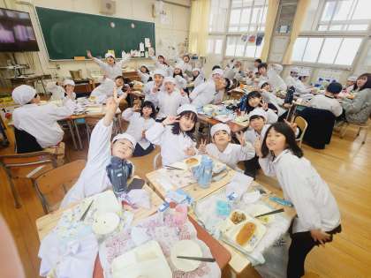 今日の給食時の様子は、2年生の写真を使っています。