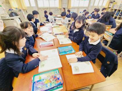 今日は、“がまくん”が「お手紙」をもらって、一番気持ちが変化したのは“がまくん”だったか“かえるくん”だったのか、それぞれ自分の考えを明確にしながらグループで話し合い活動をしました。