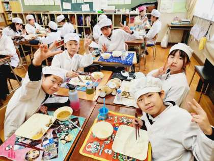 今日の給食時の様子は、4年生の写真を使っています。