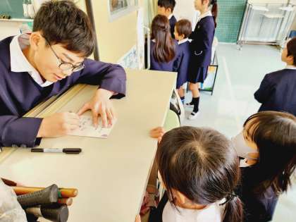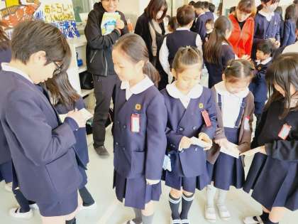 講堂での「ありがとうを伝える会」は終了しましたが、20分休憩には6年生の教室にたくさんの子どもたちが集まり、名残を惜しむかのように、6年生から記念のサインをもらっていました!