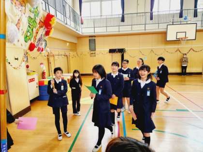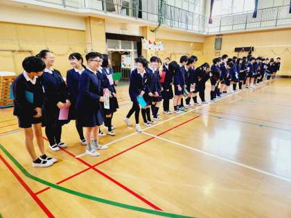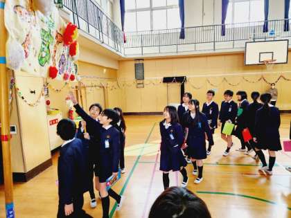 みんなに見送られ、笑顔、笑顔の6年生…。