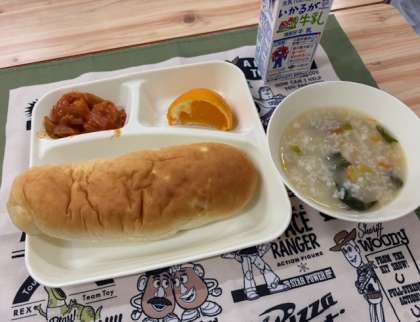 今日の「中華がゆ」には、お米のほかに肉だんご、チンゲンサイ、大根、にんじん、しいたけが入っています。