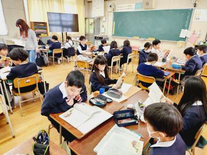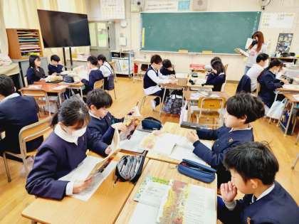 まずはお話の内容をしっかりとつかむために、みんなで教科書を読んでいきます。
