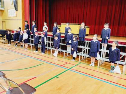 1週間後に迫った卒業式に向けて、6年生と5年生は練習に励んでいますが、4月の入学式に向けては、新しく2年生になる現1年生が練習を頑張っています。