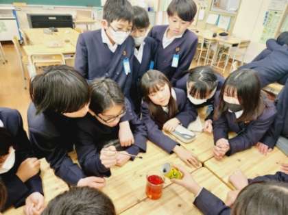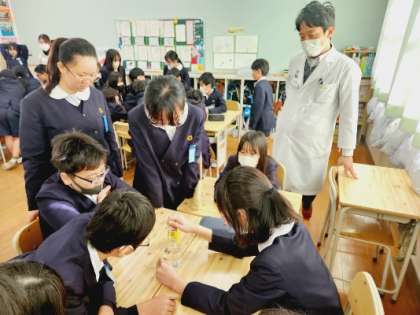 今日は正しい薬の知識を身につけるために、薬剤師の先生が実験もまじえながら、6年生にわかりやすく教えてくださいました。