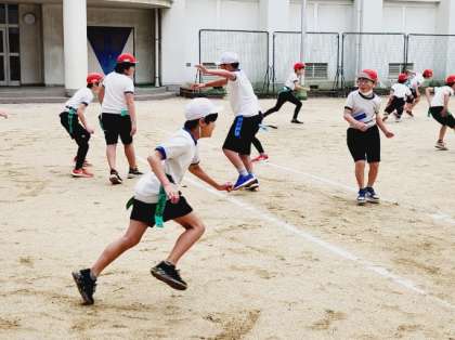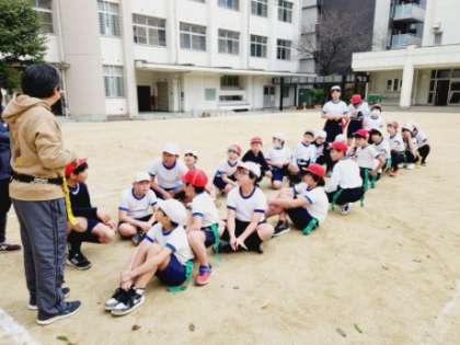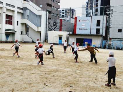 5年生が体育の時間に「タグラグビー」の学習をしていました。