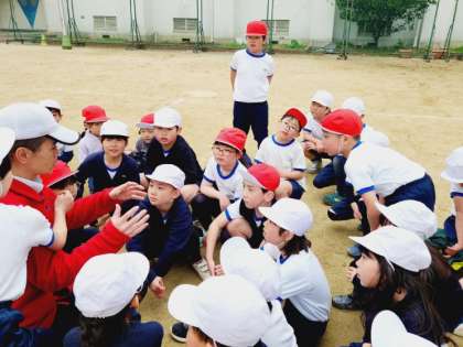 2年生は体育の時間に「だるまさんの1日」というあそびをしていました。