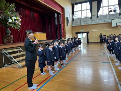 まずは、昨日入学してきた1年生と在校生の対面式がありました。一つ上の学年になった在校生は、お兄さんお姉さんの面持ちで、1年生を暖かく迎えてくれました。