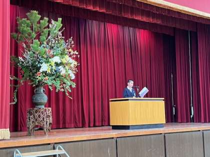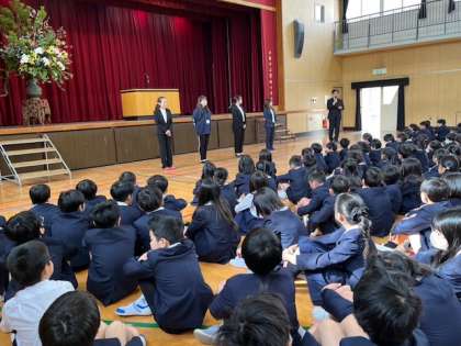 始業式の意見発表では、休み明けにもかかわらず、5、6年生の児童が、今年度の目標をしっかりとみんなの前で発表することができました。