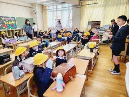 集団登校の班ごとに教室に集合し、今年1年お世話になる班長さん、副班長を中心に、班のメンバーとの顔合わせを行いました。