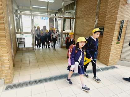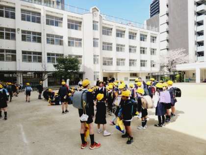 登校の仕方などの確認をしたあと運動場に集合し、緊急時に備えて集団下校を行いました。