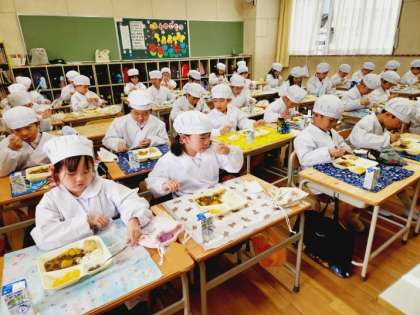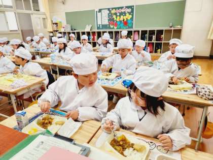 カツカレーとフルーツゼリーを、子どもたちはとてもおいしそうに食べていました!