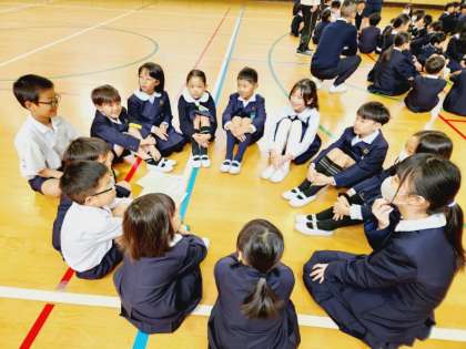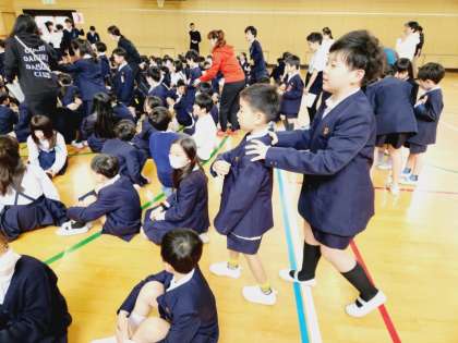 今日は「たてわり班の顔合わせ」が講堂で行われました。