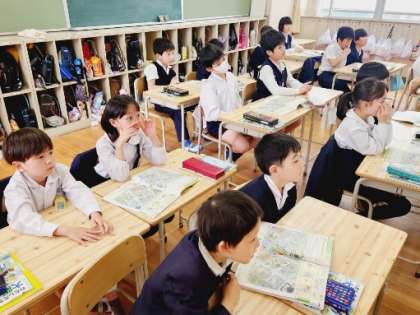 3年生では国語や算数の授業のほかに、初めて体験する社会科、外国語活動の学習も始まりましたよ!