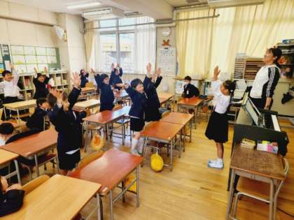 音楽の時間には、ゲーム要素を取り入れた歌をみんなで歌い、クラスは大盛り上がりでした!