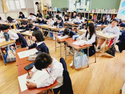 4年生は図画工作の時間に「菜の花」の絵を描いていました。春らしい題材ですね!