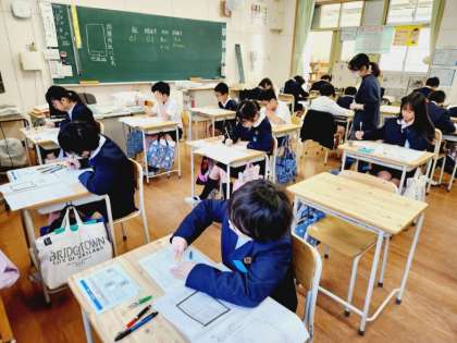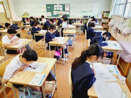 豊崎小学校の6年生も、国語、算数、理科の調査問題に頑張って取り組んでいます。