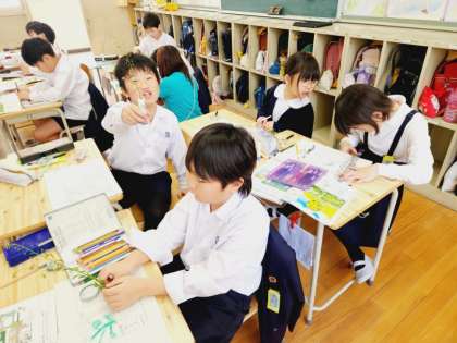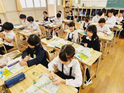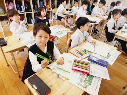 今日は摘み取った草花を使って、教室で観察記録を作成しました。