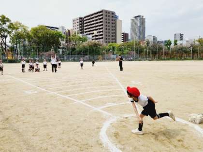 「ソフトボール投げ」の距離を計測しています!