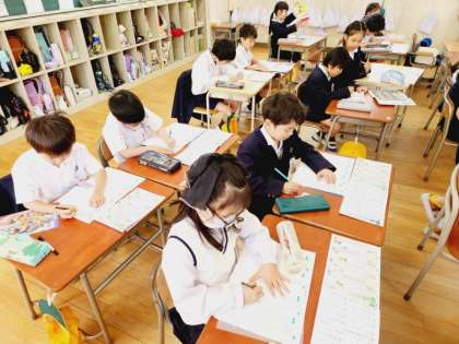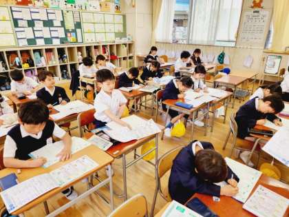 国語の時間に、2年生が新出漢字の練習をしていました。