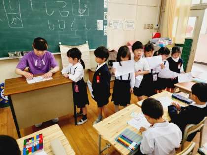 1年生は昨日に引き続き「ひらがな」の学習を国語の時間に行いました。