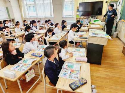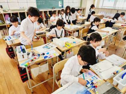 3年生は図画工作の時間に、水彩絵の具を使って絵を描く学習をしました。